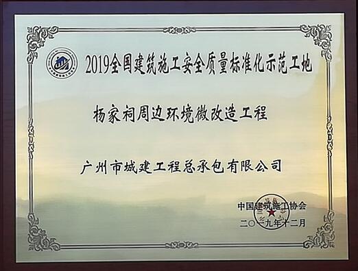 2020年1月,公司安徽住方科技有限公司年產(chǎn)300萬㎡鋁合金門窗智能工廠工程項目和楊家祠周邊環(huán)境微改造工程,分別榮獲"2019國家優(yōu)質(zhì)工程獎"與"2019全國建筑施工安全質(zhì)量標(biāo)準(zhǔn)化示范工地"。