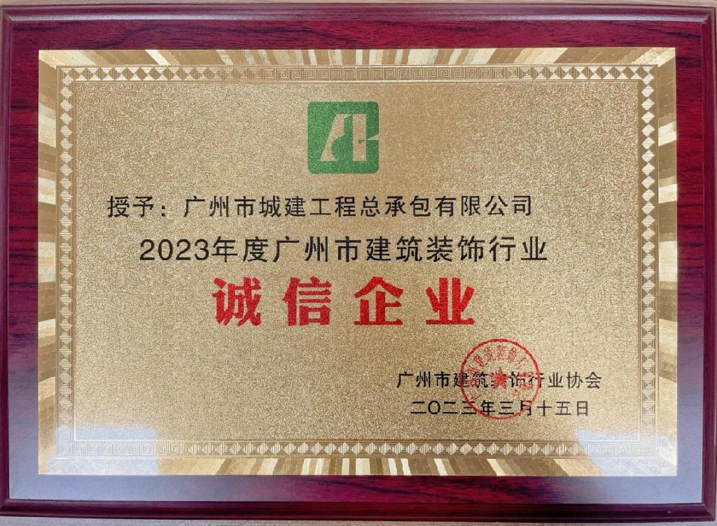 近日,廣州市建筑裝飾行業(yè)協(xié)會(huì)首次舉辦“誠信企業(yè)”評(píng)選活動(dòng),對(duì)企業(yè)依法納稅、合同履約、安全生產(chǎn)、社會(huì)誠信等管理工作進(jìn)行考察評(píng)定。公司積極申報(bào),經(jīng)評(píng)審委員會(huì)評(píng)定、向社會(huì)公示等程序,成功評(píng)為“2023年度廣州市建筑裝飾行業(yè)誠信企業(yè)”,成為首批124家達(dá)標(biāo)企業(yè)之一。