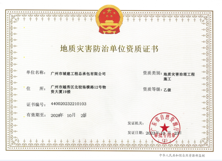 2023年8至10月,公司成功獲批地質(zhì)災(zāi)害治理工程施工乙級(jí)、監(jiān)理乙級(jí)、地質(zhì)災(zāi)害評(píng)估和治理工程勘查設(shè)計(jì)乙級(jí)資質(zhì)。
