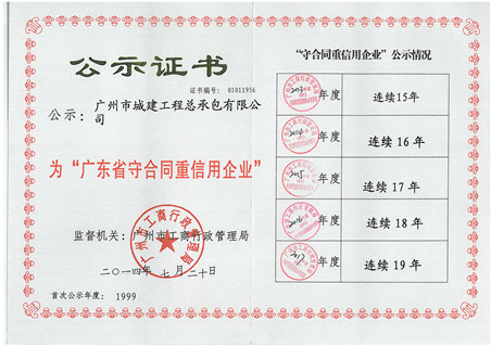 日前,在廣州市工商行政管理局開展的守合同重信用評選活動中,公司連續(xù)19年(1999—2017年)獲得“廣東省守合同重信用企業(yè)”榮譽。 “守合同重信用”是企業(yè)在市場競爭中非常重要的品質(zhì)之...