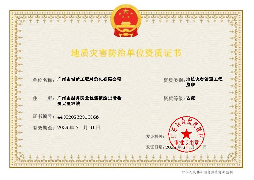 地質(zhì)災(zāi)害評(píng)估和治理工程勘查設(shè)計(jì)乙級(jí)