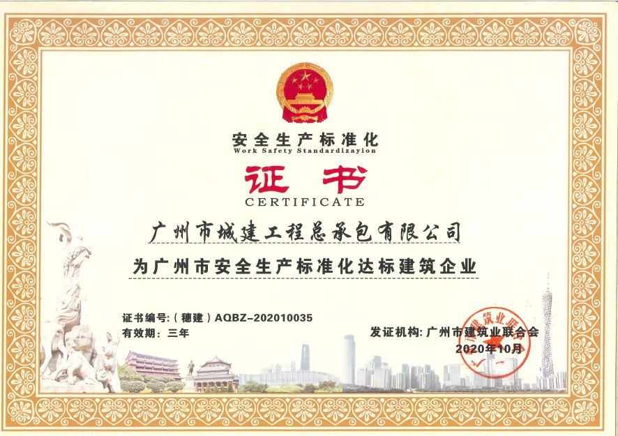 廣州市安全生產(chǎn)標準化達標建筑企業(yè)